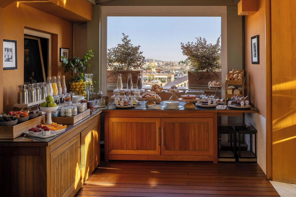 Hier ist das Hotel Ihrer Träume: Hotel «Portrait Roma - Lungarno Collection» befindet sich in Rom. Dieses Hotel befindet sich fußläufig zu erreichen vom Stadtzentrum. Sie können zu Fuß die Gegend erkunden in der Nähe von des Hotel. Orte in der Nähe: Spanische Treppe, Spagna und Mark-Aurel-Säule.